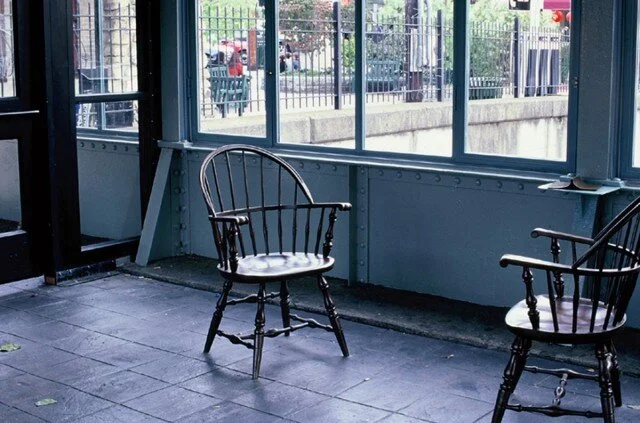 Permanent work at Metro North train station in Pleasantville, New York, commissioned by the New York Metropolitan Transportation Authority Arts for Transit Program. 16 chairs and magazine installed in train station waiting area, 6 chairs on the platform.